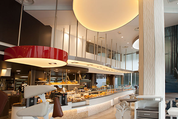 Plafonds lumineux, ambiances de saisons et éclairage de la toute nouvelle boulangerie sur la coulée verte de Nanterre : L’Atelier des Pains.